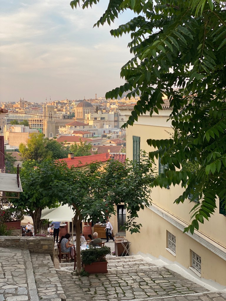 Después de pasear por toda esta zona del barrio de Plaka que colinda con Anafiotika, fuimos a cenar a Klepsidra Cafe y nos gustó mucho tanto la comida como el ambiente. En el barrio de Plaka tienes callecitas ideales y muchísima vida, por lo que hay un montón de opciones donde comer/cenar o tomar algo.