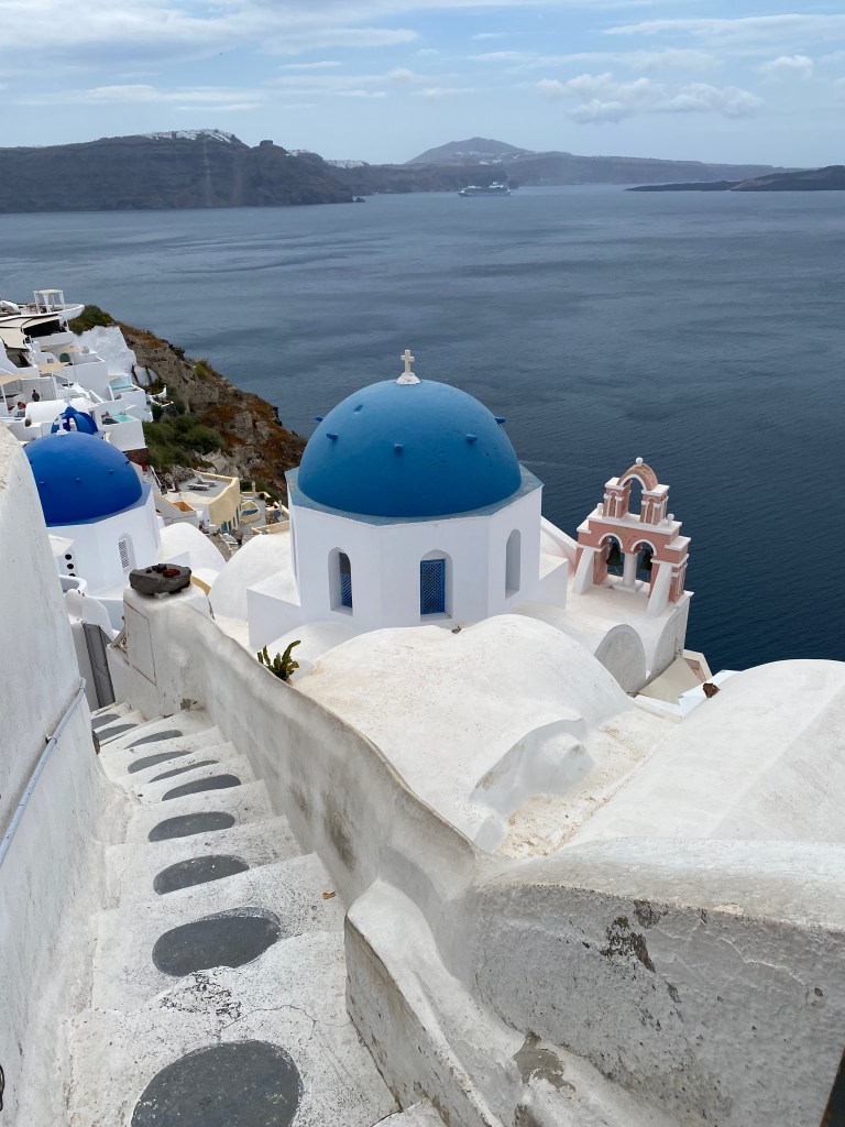 Nosotros optamos por algo más chill y recorrimos las calles de Oia conociendo sus rincones y varias de sus fachadas y cúpulas más llamativas.