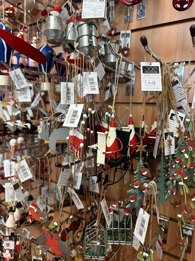Encontramos esta tienda de regalos donde tenían unos adornos navideños preciosos.