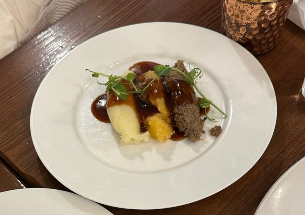 Pedimos varios platos siguiendo la recomendación del camarero, entre ellos la “casserole of the day” y los famosos Haggis. Estaba todo buenísimo (excepto los haggis que la verdad no somos muy fans) y nos costó aproximadamente 18€ por persona.
