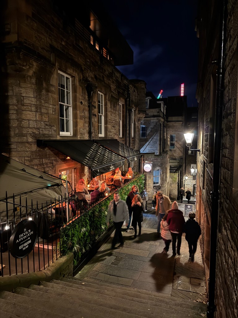 Fuimos a conocer la famosa Victoria Street y entramos (por primera vez) al mercado navideño que montan en los Princess Street Gardens.
